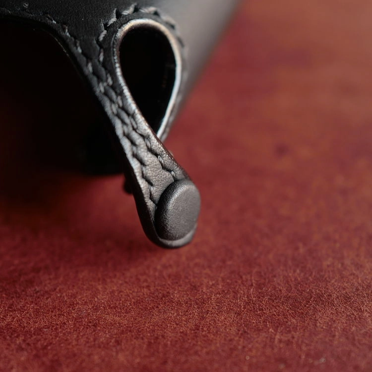 Novonappa black / black inner / black stitch / Black Novonappa leather covered snap button / battery door